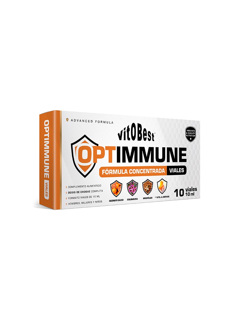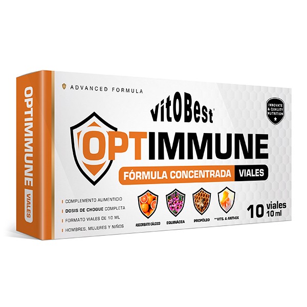 OptImmune Vials, from Vitobest®, is a formulation specially designed to contribute to the normal functioning of the immune system and help our body defend itself from external aggressions such as viruses, bacteria, and allergies. That's why it uses the highest quality ingredients with proven health benefits: propolis, calcium ascorbate, N-Acetyl L-Cysteine (NAC), lactoferrin, essential oil of myrtle, and dry extracts of echinacea, astragalus, licorice, grapefruit seed, ivy, and plantain.